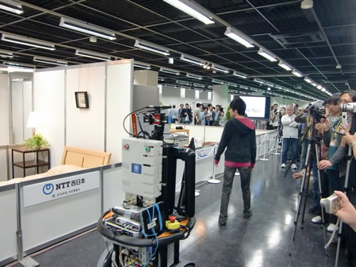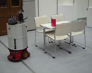 Team NICT Website生活支援ロボットの実証としてロボカップ@ホーム(RoboCup@Home)に参加しています。ロボカップ@ホームはロボカップのリーグのひとつで、世界最大の生活支援ロボットのベンチマークテストです。ロボカップ@ホームでは、リビングルームやキッチンルームが再現された競技ステージで、ロボットが、物の探索、棚からユーザに言われたものを取ってくる、人と対話しながら場所を学習する等、日常生活に役立つ機能をどれだけ正確に行えるかを競います。